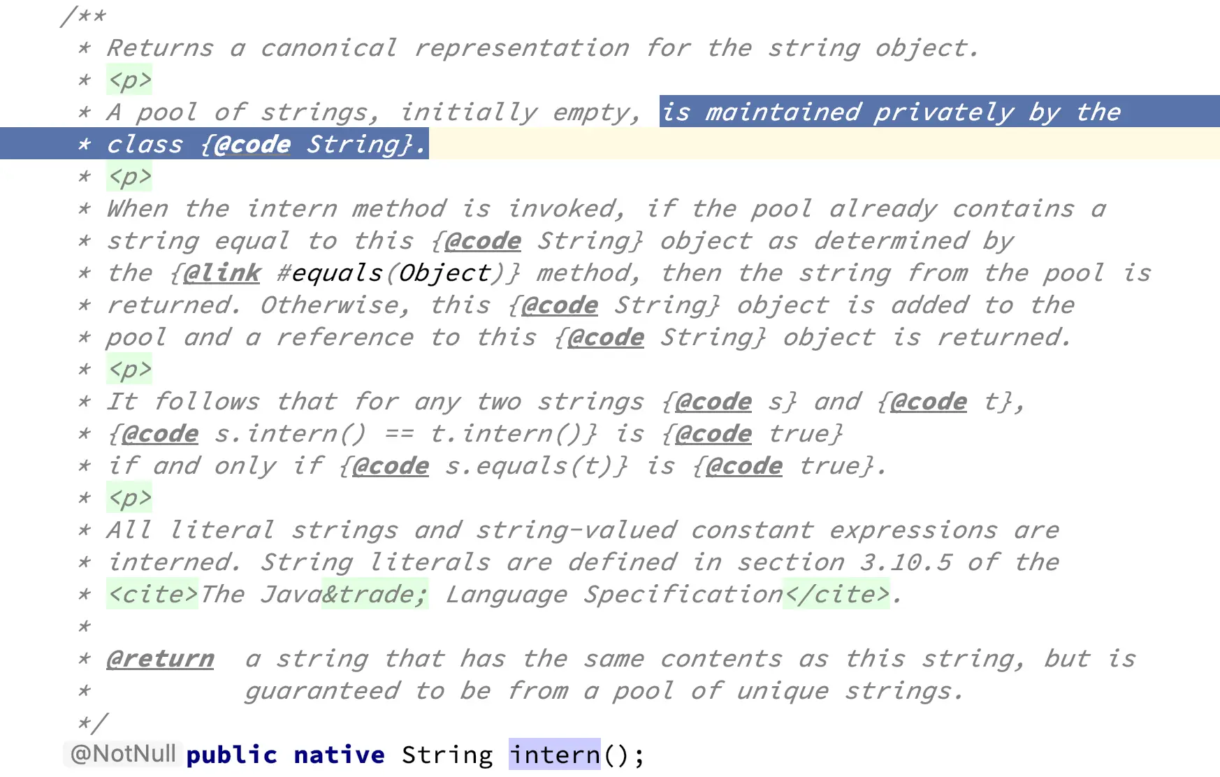 A pool of strings, initially empty, is maintained privately by the class {@code String}.