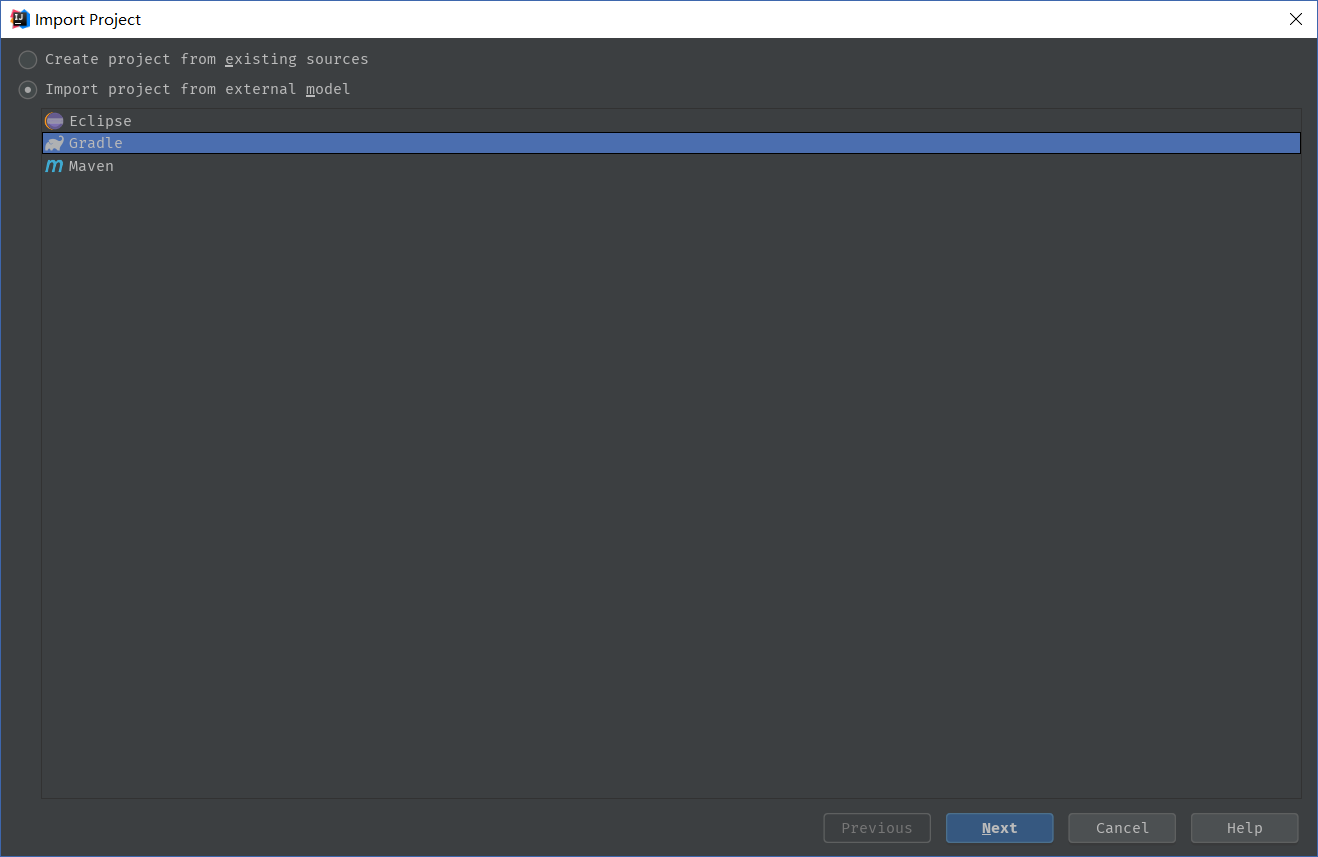 Import project from external model选择