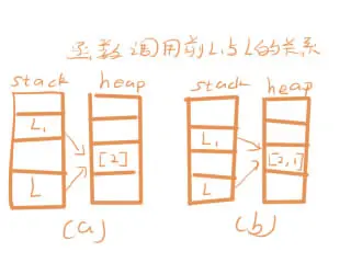L1.append(1) #对L1采用.append()方法,结果为[2,1],并且改变全局变量L的值(因为L1和L都指向同一个heap)