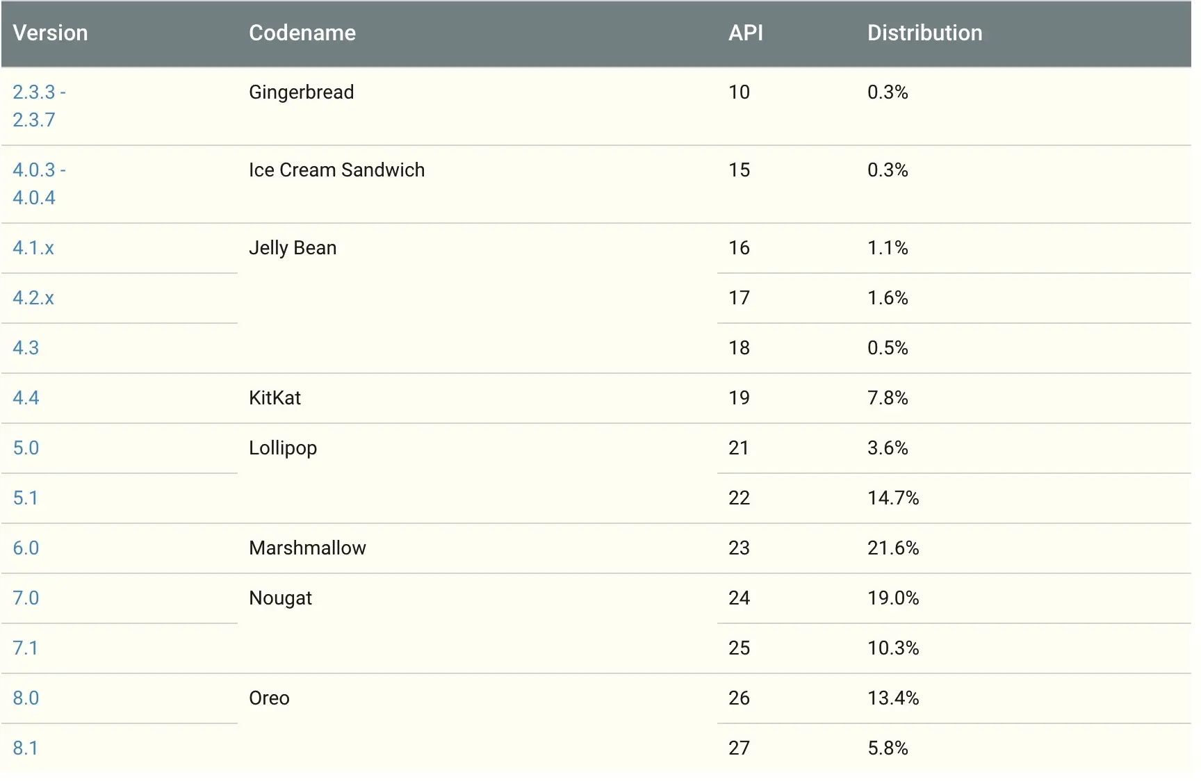 根据目录'/build/core/version_defaults.mk' 打开version_defaults.mk文件,然后找到PLATFORM_SDK_VERSION这个关键字的值,就可以在下表中找出相应的版本。