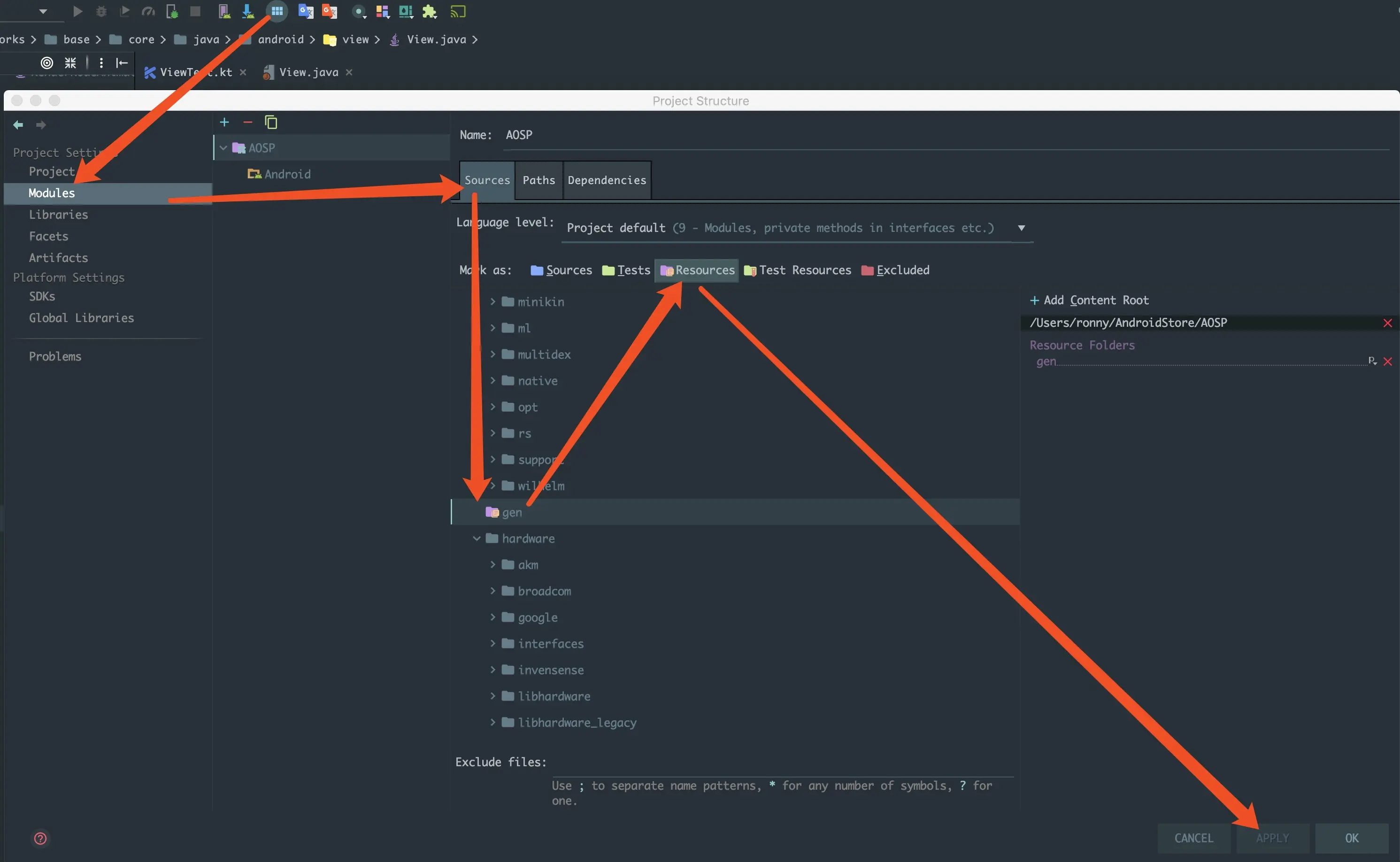Scanning file to index....不动 解决办法如下(Open module setting --> Modules --> 找到gen文件夹 --> 选择Resources)