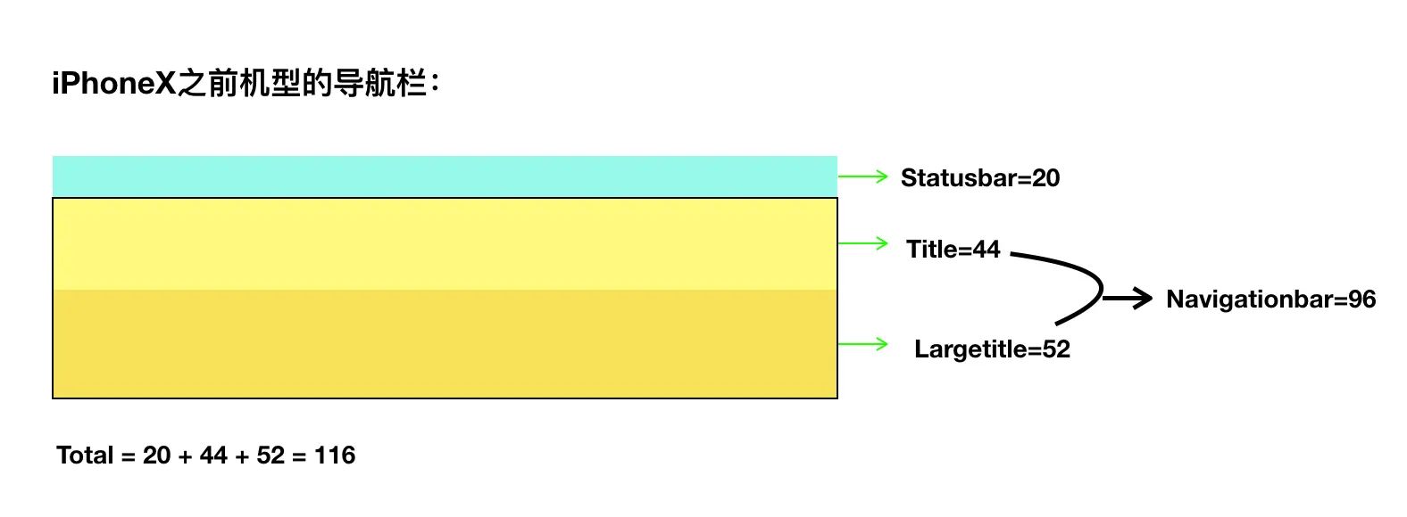 iOS7以后,苹果给UIViewController引入了topLayoutGuide 和 bottomLayoutGuide两个属性。用于表示顶部或底部的高度。根据有无显示状态栏、导航栏、tabBar返回高度。如果VC内嵌VC,内嵌的VC将视为另起的顶底坐标体系,不受原状态栏等影响。你可能听都没听过这两属性,因为开发中我们习惯直接用宏写上数值,几乎不用这两个属性。更何况那时iPhone还没有全面屏这种东西。