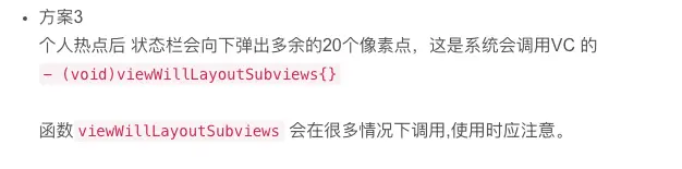当状态栏增高时,App的控制器的view将会下移20,但是高度却不变。tabBar不会有任何改变。所以如果某个界面scrollView一直到底的话,最好用约束到底部,这样调用viewWillLayoutSubviews时就会修改scrollView高度。建议不要写高度,不然会出现scrollView底部显示丢失20高度的问题。 iOS 热点 拨打电话 适配