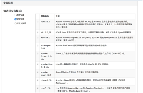 (2)完整安装:DKM集成了相对完整的大数据开发环境组件。