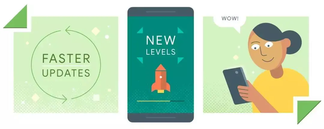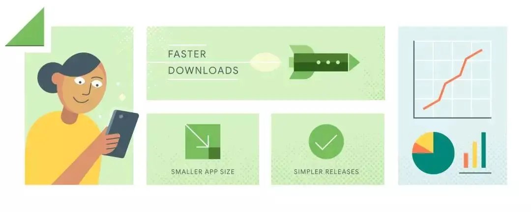 Google 不希望开发者面临这些困境,因此我们一直在努力改进。大致的想法是这样的:如果您将所需的所有内容上传到了 Google Play,让 Play Store 为每个用户和设备按需提供相应的内容。这很简单,不是吗?这一过程可以减少您支持 Android 多样化生态系统所需的工作量,并使用户手中的应用体积更小。正如您稍后将在本文中发现的那样,这个新方案还有助于改善用户获取过程:通过功能和更新,即时发现、安装、吸引,以及保留用户。