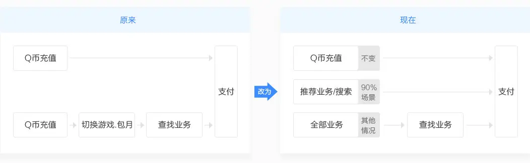 在不影响其合理分类的基础上,用模块卡片化结合错落排列的方式来突出页面主要模块的层级,同时用垂直的视线引导用户阅读内容信息,使用户更聚焦于主要操作,同时方便用户快速找到所需业务,提高付费效率
