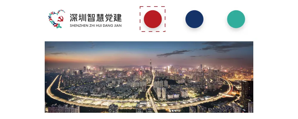 基于政府网站的设计规范指引,最终从深圳智慧党建LOGO中提取了更易认知与“党”相关的红色;并在页面中融入深圳城市特色。
