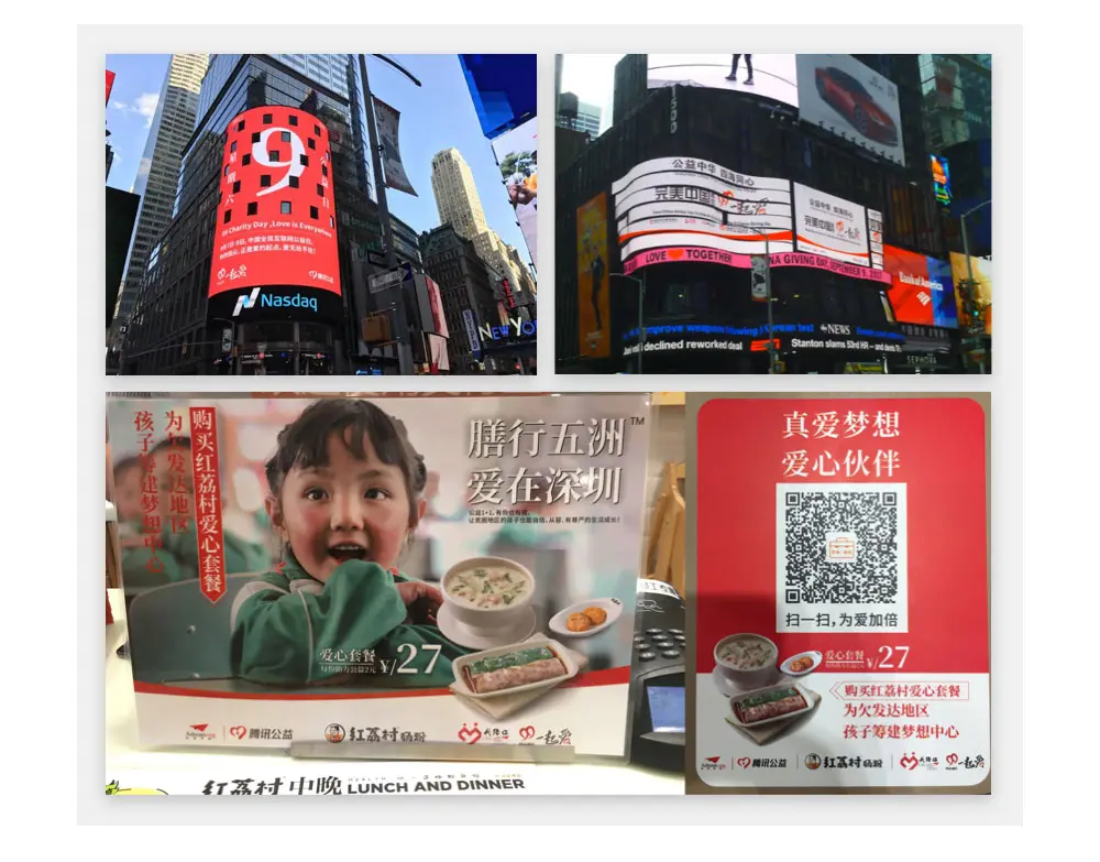 在今年的活动合作与运营中,共计有70多家企业,2万多家门店制作、近3万的广告位应用了VI与物料规范,其中物料规范中的日历示例还被应用到美国时代广场的纳斯达克大屏广告中对外展示。