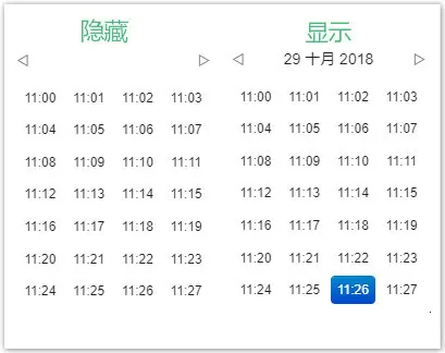 - showTitleInMaxView 是否显示最上级视图的标题 只会影响最上级视图的标题,适合用于的情况有:只想选择小时分钟,不想显示日期选择的信息等情况。 效果如下: