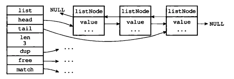使用listNode是可以组成链表了,Redis中使用list结构来持有链表: