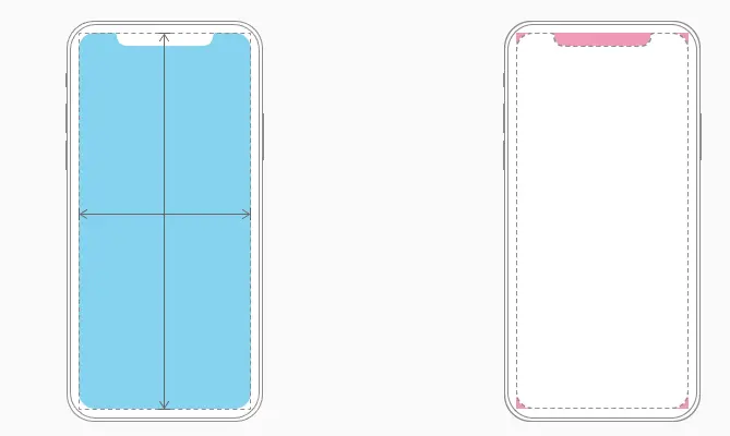 另外,屏幕显示不再是矩形,而是切割成了大圆角矩形,为了避免显示遮挡,我们需要在四周留出更多边距。
