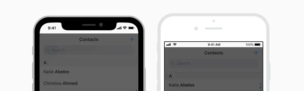 顶部状态栏,由于全屏和“刘海”的关系,变得更高了,由20pt变成了44pt。