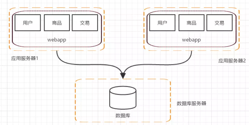 随着业务的发展,业务越来越多,应用的压力越来越大。工程规模也越来越庞大。这个时候就可以考虑讲应用拆分,按照领域模型讲我们的用户、商品、交易拆分成多个子系统