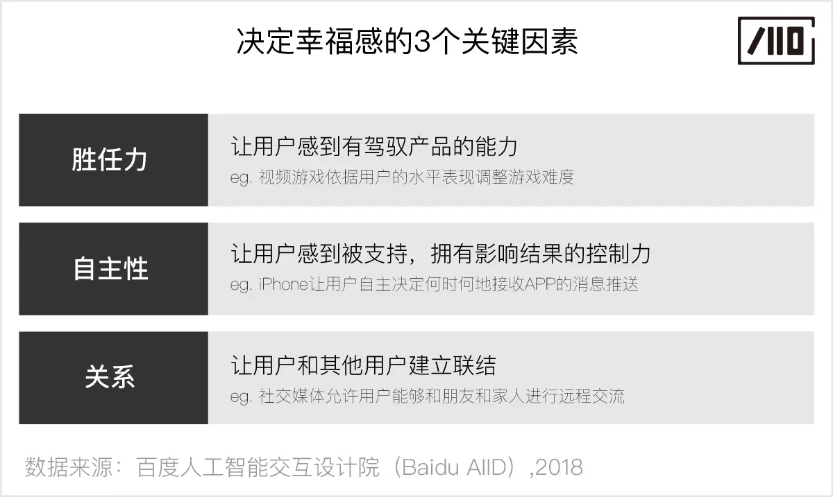- 心理学上有很多与幸福相关的决定性因素,我们在设计时可以充分考量。