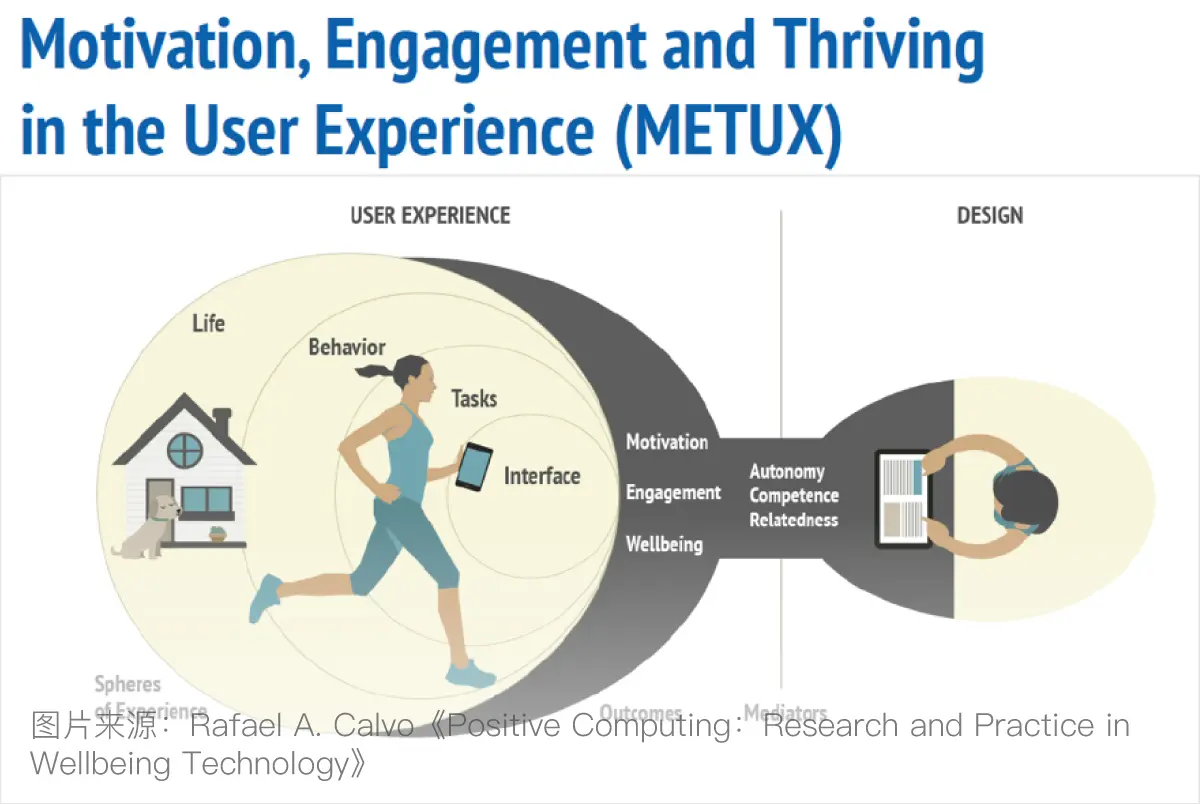 在设计过程中,应该关注“胜任力”、“自主性”和“关系”三个关键因素,这些基本心理诉求是动机、投入感和幸福感的根本。(有关METUX模型,可通过卡里罗教授的论文《Designing for Motivation, Engagement and Wellbeing in Digital Experience》详细了解)