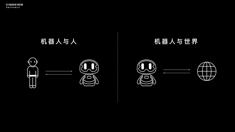 Robot这个词的第一次出现是在1921年的戏剧作品中,他的词根是robota,它的意思是“苦力”,可以说机器人从诞生的第一天就承载这人类的巨大梦想,这个梦想是将人类从繁重的劳动这解放出来。从交互角度,人的劳动包含两个部分,第一部分来自于人与世界的交互,比如说洗衣服、搬运、做饭。第二部分来自于人与人的交互,比如说指路,咨询,讲故事。所以如果机器人想要完成他的使命,必须解决两方面的交互问题。它的第一个维度是机器人与世界的交互,第二个维度是机器人与人的交互。
