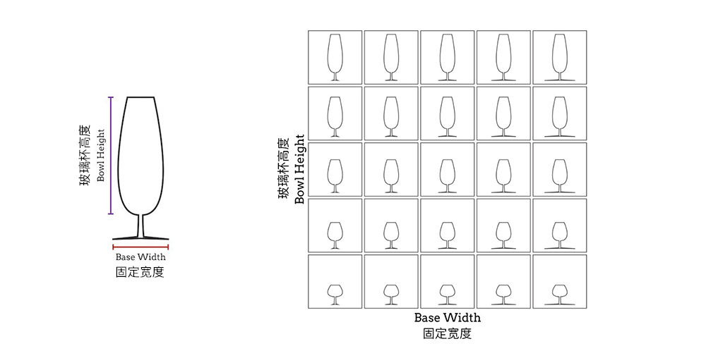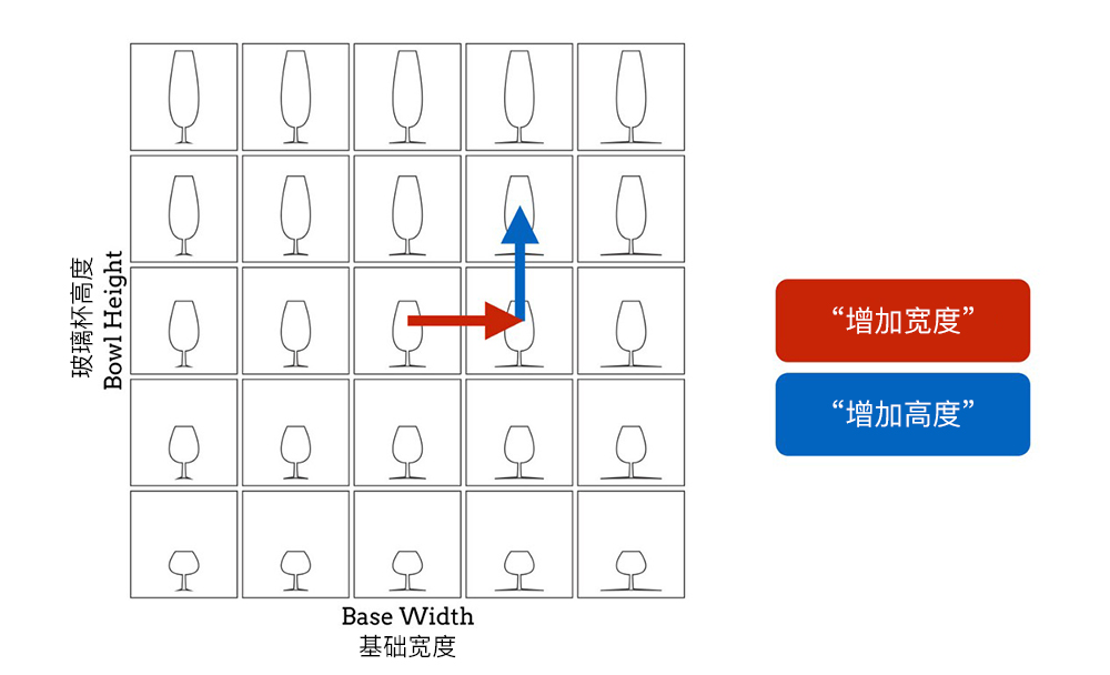 让我们来看看在设计家用物品(如酒杯)时可能需要考虑的一些因素。如果我们想要把玻璃做得更高,我们可能需要加宽底座来防止它翻倒。在这里,需要针对这一个约束而改变两个属性。