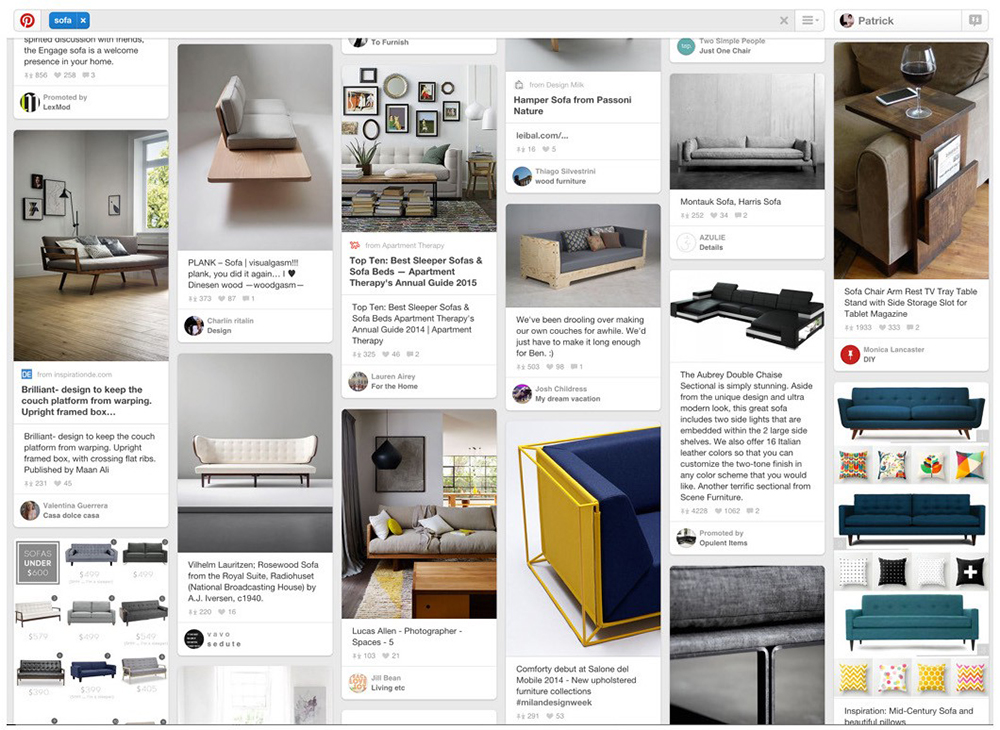 但是,如果让他们访问Pinterest,并要求他们通过挑选喜欢的元素来设计客厅,那么许多人就会觉得容易很多。这种“所见即知”的感觉会形成一种强大的动力来促使用户参与到设计中。用户不需要去了解工具背后运行的原理。相反,当他们看到实际的应用效果后,就能确定是否喜欢它。