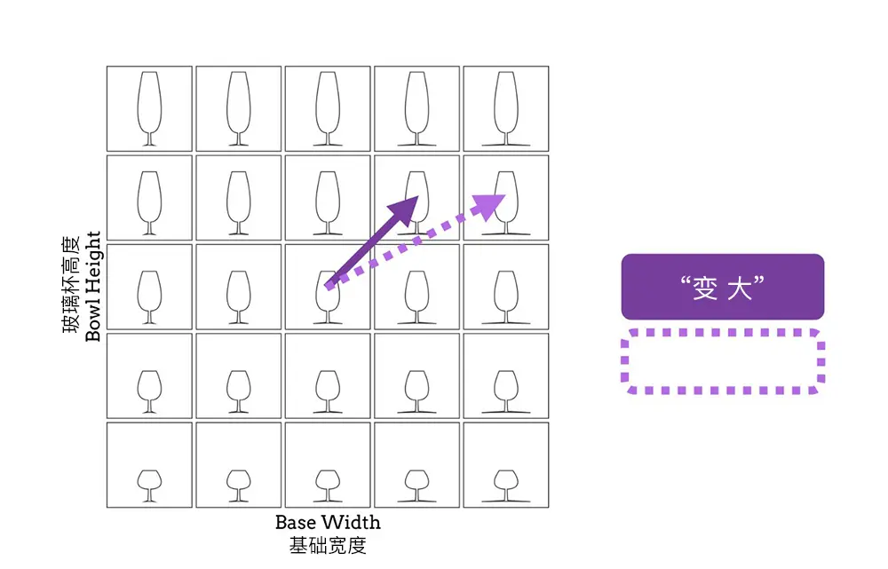 让我们来看看在设计家用物品(如酒杯)时可能需要考虑的一些因素。如果我们想要把玻璃做得更高,我们可能需要加宽底座来防止它翻倒。在这里,需要针对这一个约束而改变两个属性。