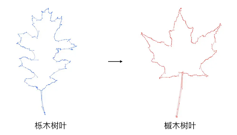 例如,假设我们已经使用Bezier路径创建了一个橡树叶的图形,接着我们想要它变成枫树叶。如果在传统的设计软件中去做的话,我们需要不断调整Bezier路径。作为设计师,我们似乎习惯了这种工作流程。但事实上,这与目前软件的使用方式有很大关系,当前的Bezier路径功能决定了我们只能手动操作。