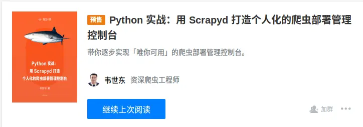 还有更多的爬虫部署知识以及 Scrapyd 改造知识在等你,点击这里查看掘金小册,我们一起来做一个带有访问权限控制的爬虫部署控制台吧!