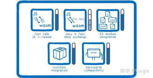 首先,我们需要 JS 和 WebAssembly 之间的快速调用,因为如果你将一个WebAssembly 模块集成到现有的 JS 系统中,很有可能你需要在两者之间进行大量调用,而这些调用的速度需要很快。