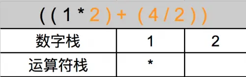 ) ,弹出 2 个数字,弹出一个运算符,就进行运算,再将结果压到数字栈,就变成这样了。