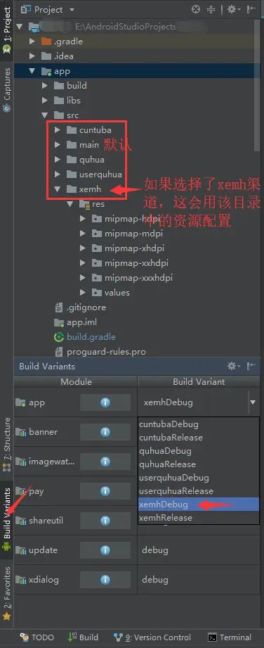 }- 这样,如果我们打包userquhua这个渠道,看第2点中介绍选择userquhuaDebug。