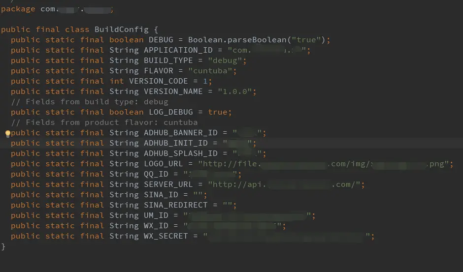 可在build.gradle中配置动态配置java代码调用的常量数据(如:通过该方式我们可根据不同渠道动态配置第三方appid,或其他需要根据渠道而改变的数据)