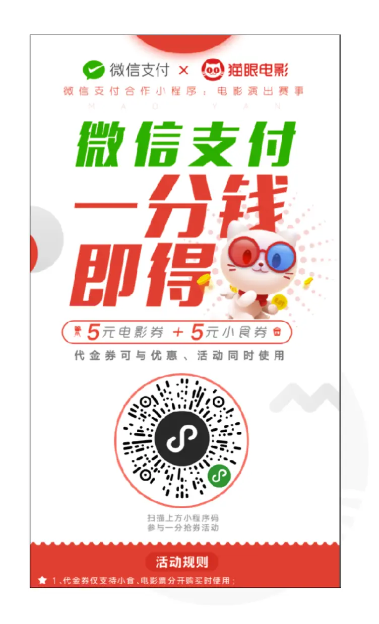 支付1分钱领5元选座券 + 5元卖品券