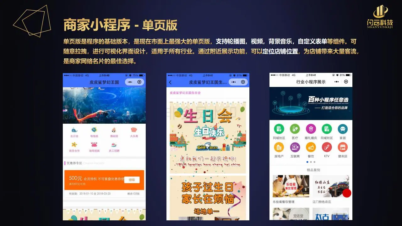 闪云小程序,包含多样化的模板和可视化操作页面,能够快速创建各类版本小程序。