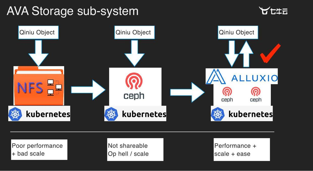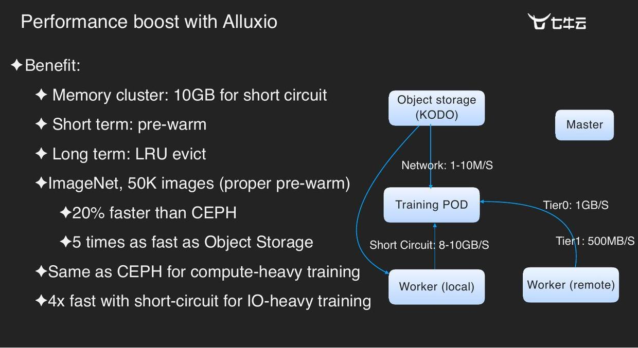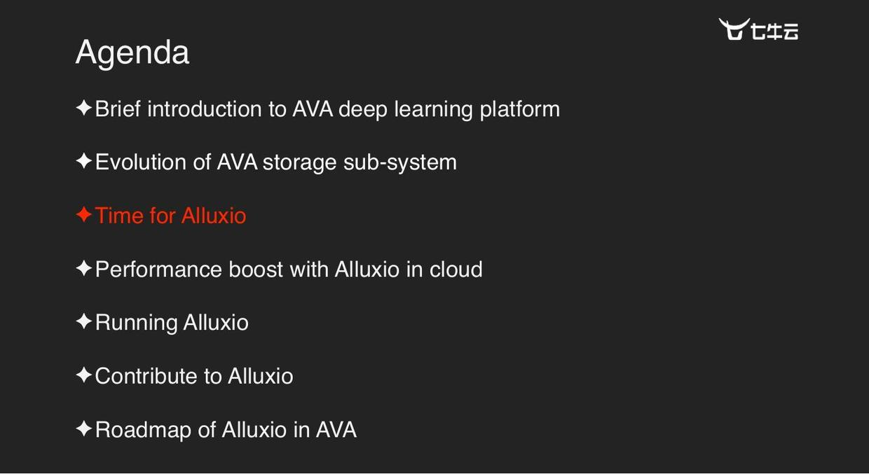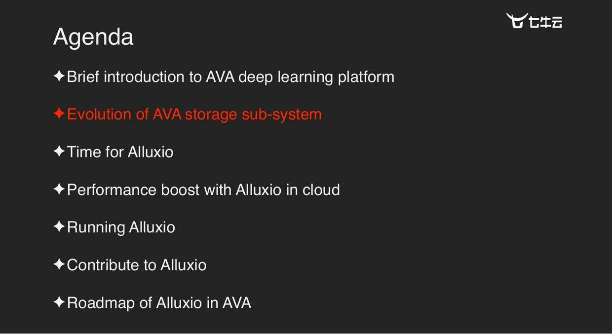七牛云 Atlab 实验室专注于机器视觉方向的深度学习研究。我们团队针对深度学习训练打造了高效的训练平台 AVA,深度整合了存储和计算资源。为了提高算法工程师训练模型的效率,我们使用 Alluxio 加速训练任务读取海量视频、图片等样本文件,并针对我们的应用场景,从元数据管理和读写分离等方向入手对 Alluxio 进行改造,实现了文件读写性能 50% 以上的提升,同时显著降低了存储系统的成本和容量风险。