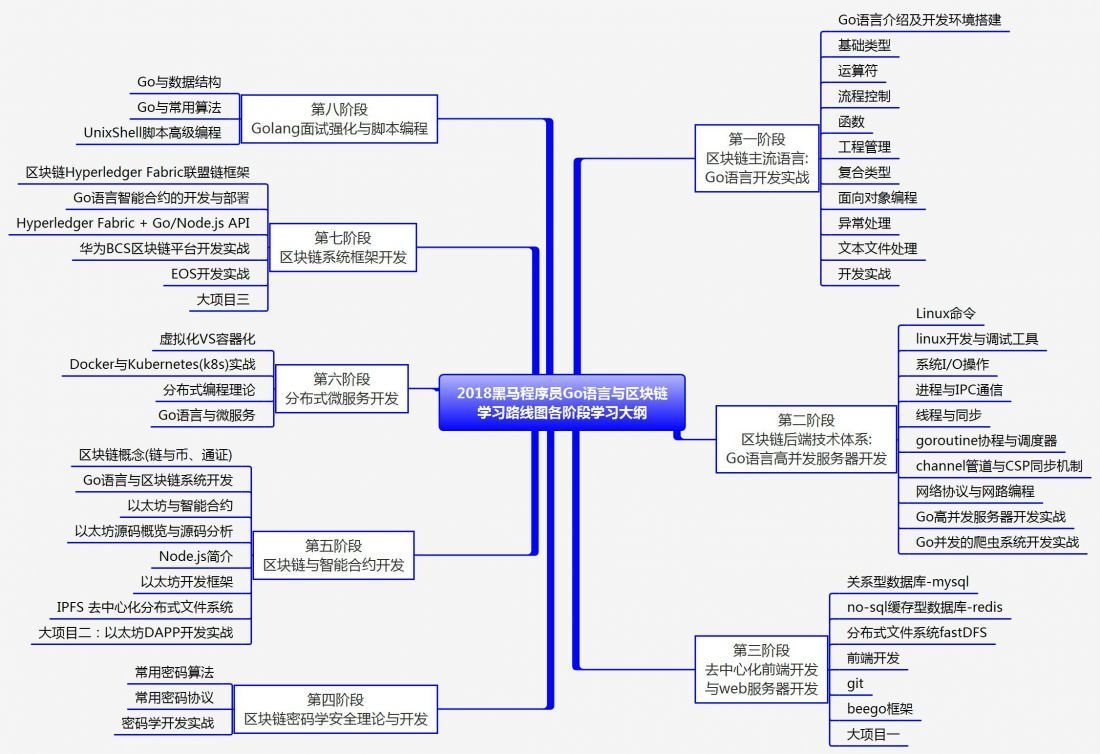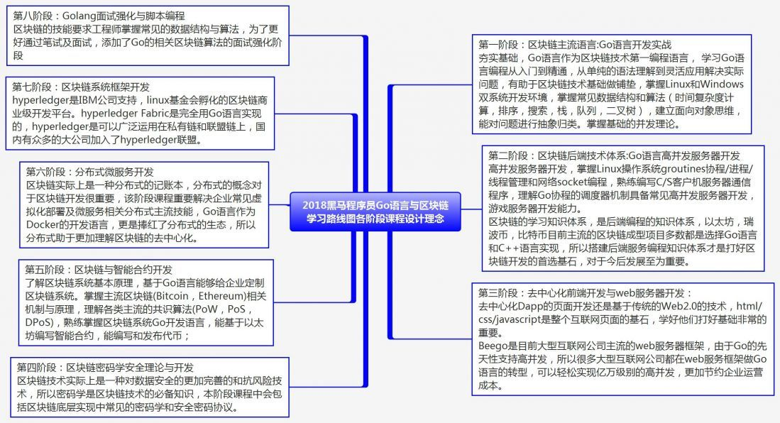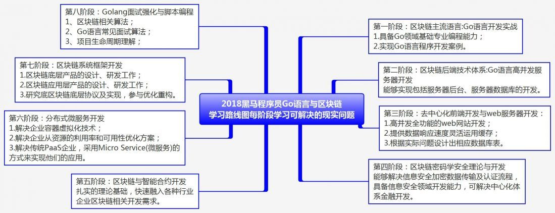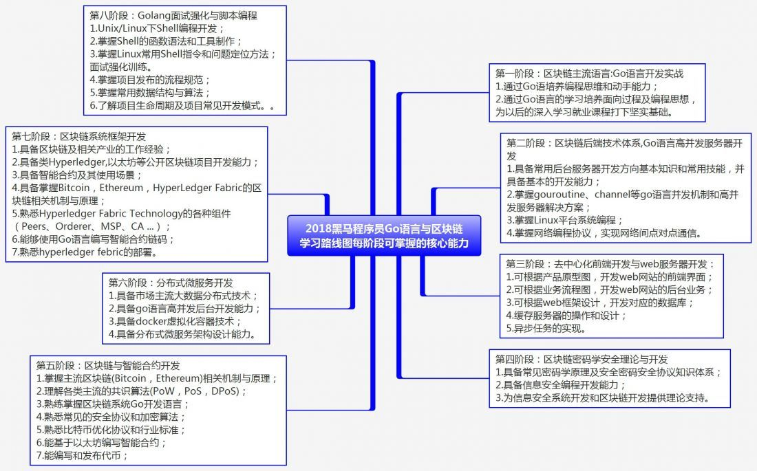 Go语言之如何学习Go语言?GO语言+区块链学习线路 RunFromHere 2018-10-30 322 阅读1分钟 GO语言+区块链学习线路 学区块链为什么要学Go语言? 1. 学习路线图---市场价值及可解决的问题 2. 学习路线图---可掌握的核心能力 3. 学习路线图---设计理念 4. 学习路线图---学习大纲及各阶段知识点 来源:黑马程序员 非打广告,有需要视频的可以去wx公众号找,也可以评论找我,免费分享!