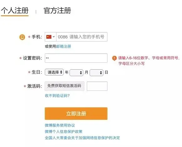 用户体验是从用户的角度出发,不仅要把炫酷的视觉效果展现给用户,还要从功能上让用户有所感知。例如当用户注册微博账号时,电话号码提供错误或者没有输入密码,输入框右侧应有相应提示。这种用户体验的细节问题是否处理妥当,是判断一名前端工程师是否优秀的因素。