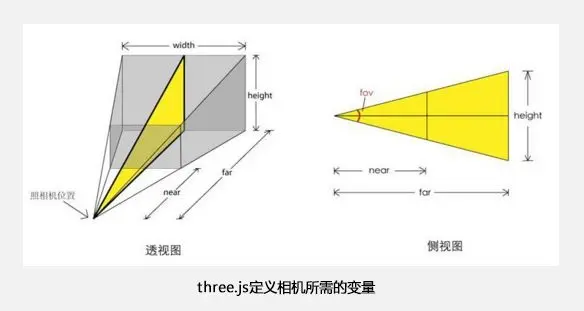 相机需要传的四个参数分别是fov(相机摄像角度,可用于放大和缩小)、width/height(宽高比)、neer(近距离界限)、far(远距离界限)。