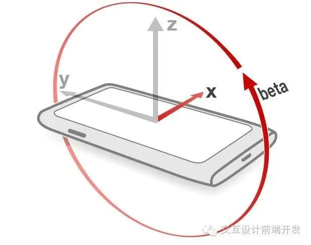 监听陀螺仪:陀螺仪也分为x轴(beta:-180至+180)、y轴(Gamma:-90至90)、z轴(Alpha:0至360),如图: