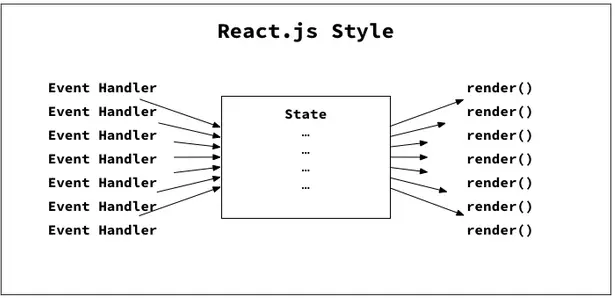 State是组件的基本状态,类似于AngularJs中的$scope变量,当我们在事件处理函数中改变和调整State的值时,React会自动调用render()方法实现视图的刷新,完成视图模型到视图的单向绑定和刷新。