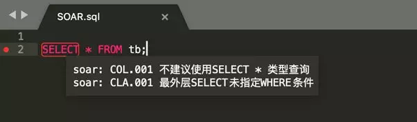 file.sql:1:COL.001 不建议使用SELECT * 类型查询Vim插件