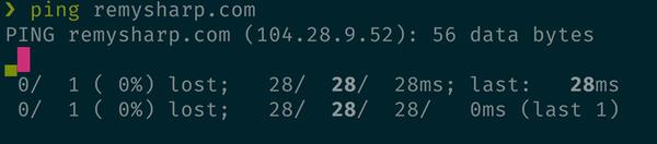 ping 非常有用,当我碰到“糟了,是不是 X 挂了?/我的网不通了?”这种情况下我最先想到的工具就是它了。但是 prettyping(“prettyping” 可不是指“pre typing”)在 ping 的基础上加了友好的输出,这可让我感觉命令行友好了很多呢。