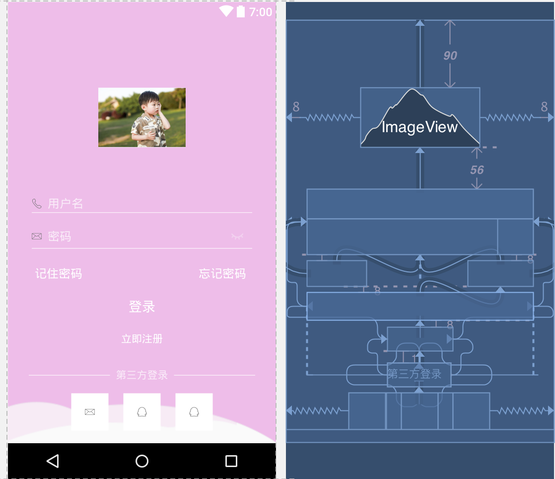 这个是项目中登录界面的实现方式,在此记录一下, activity_main.xml文件如下: