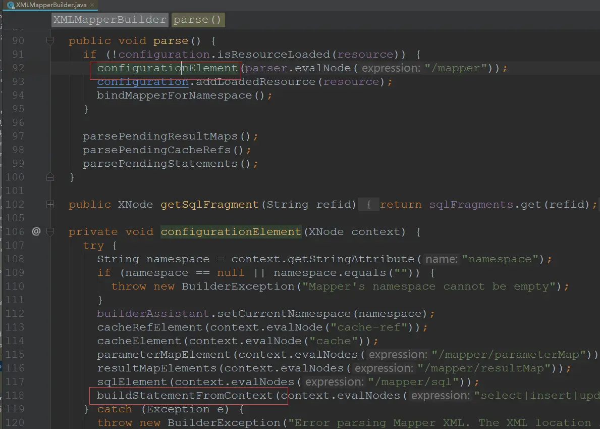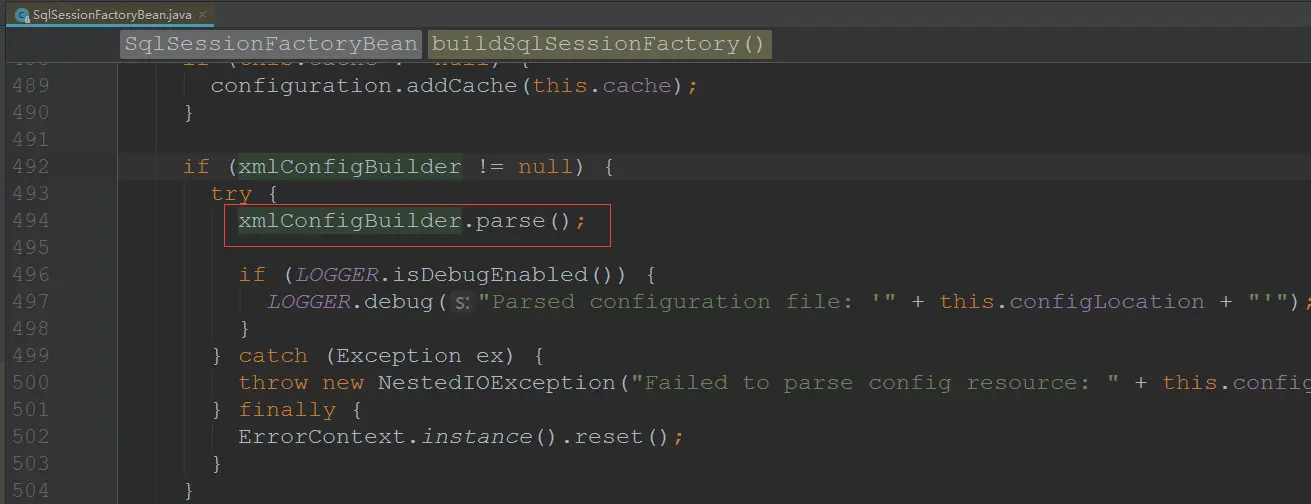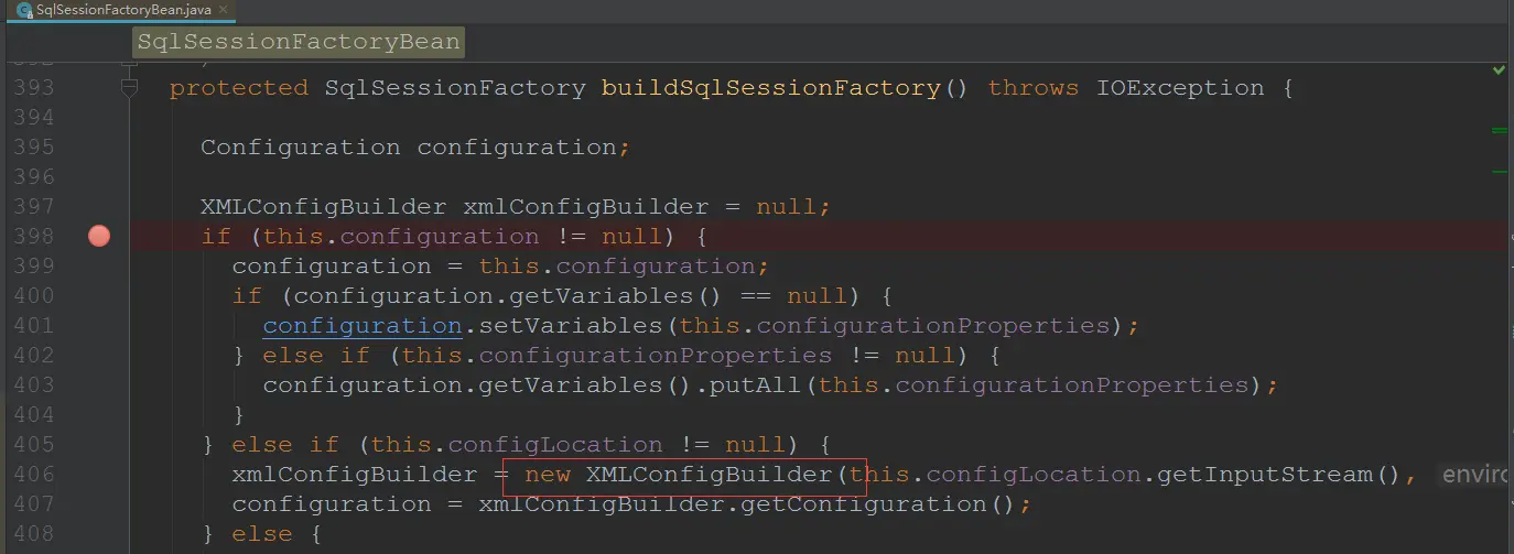 - 读取配置文件,将配置信息传给SqlSessionFactoryBuilder的build方法,构造出SqlSessionFactory