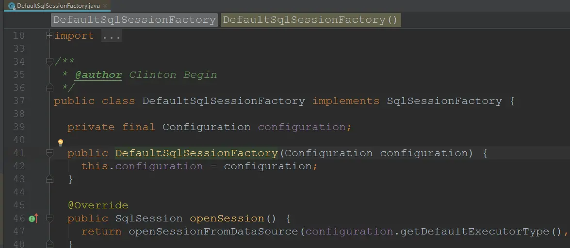 DefaultSqlSessionFactory构造函数只是将Configuration保存了下来,当需要获取session时,根据内部的configuration去具体创建