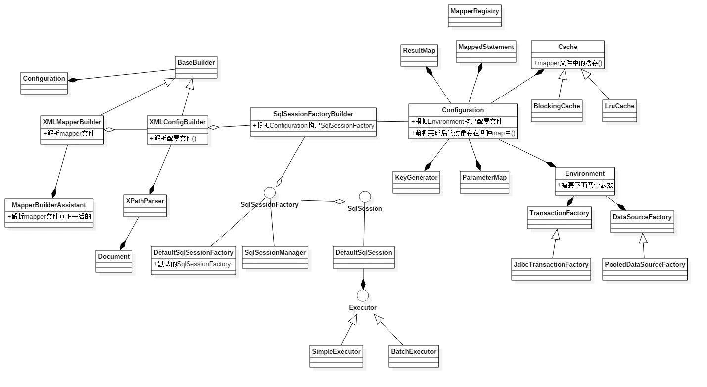 - SqlSessionFactoryBuilder: 根据配置信息Configuration或代码构建SqlSessionFactory对象