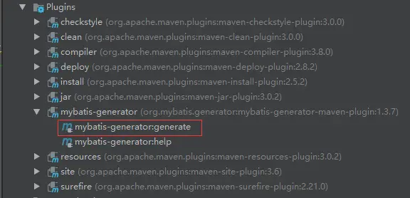 <build> <plugins> <plugin> <groupId>org.mybatis.generator</groupId> <artifactId>mybatis-generator-maven-plugin</artifactId> <version>${mybatis-generator.version}</version> <configuration> <overwrite>true</overwrite> <verbose>true</verbose> </configuration> <dependencies> <dependency> <groupId>mysql</groupId> <artifactId>mysql-connector-java</artifactId> <version>${mysql.version}</version> </dependency> </dependencies> </plugin> </plugins> </build> - 运行插件
