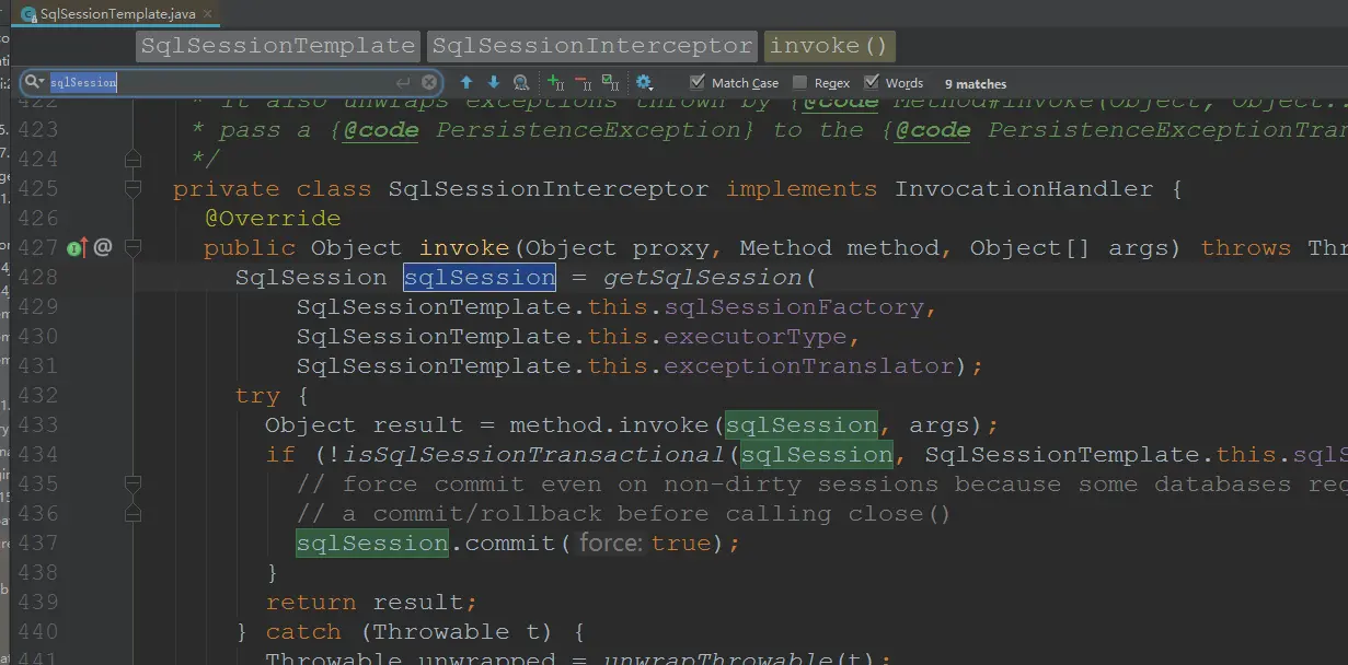 SqlSessionTemplate内部创建SqlSession的代理类,将没有加事务的SqlSession的操作做强制提交