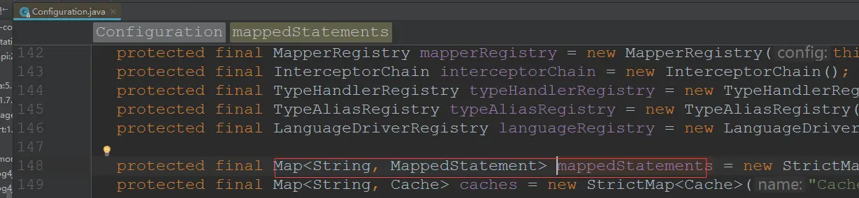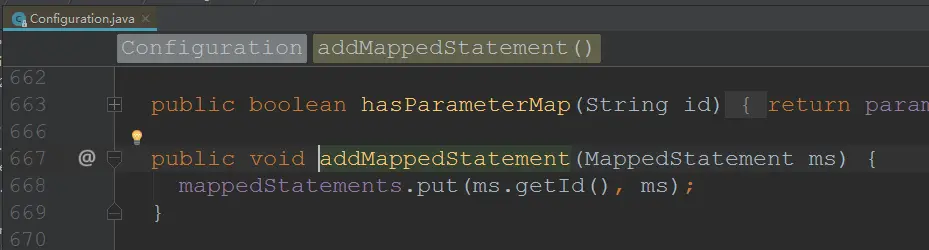 - MappedStatement查询就是在前面章节说道了解析文件完成后保存到的Configuration的map中查找