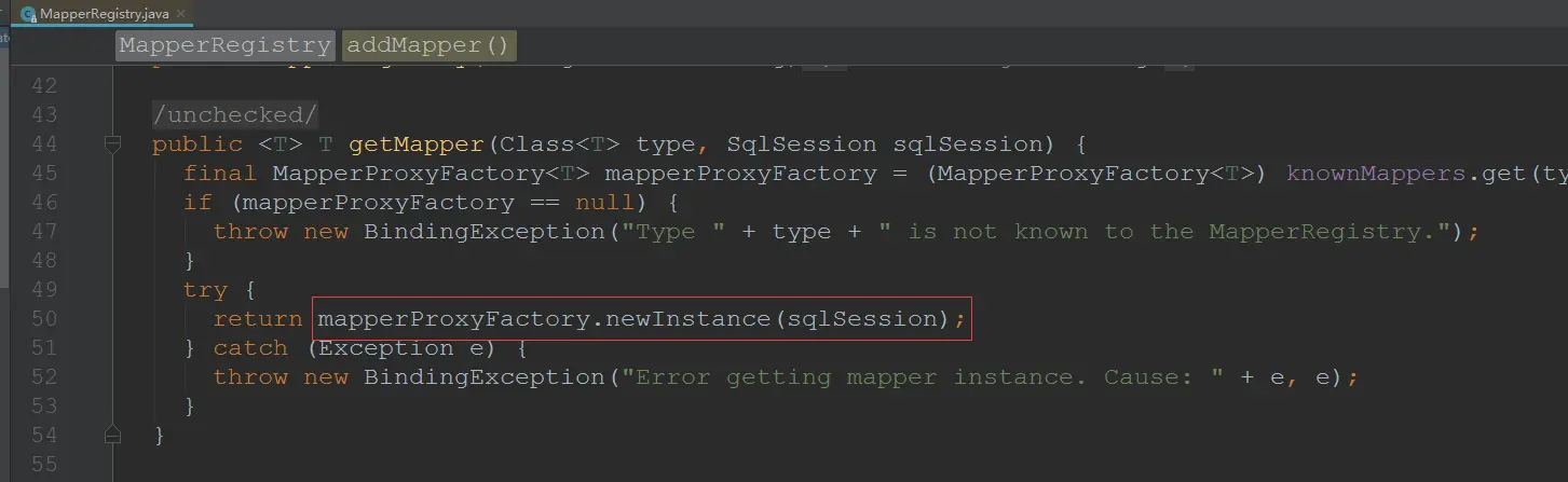 - mapper的注册前面介绍了是通过MapperRegistry的addMappers方法,而获取mapper的方法是getMapper,那么谁来调用这个getMapper方法呢?