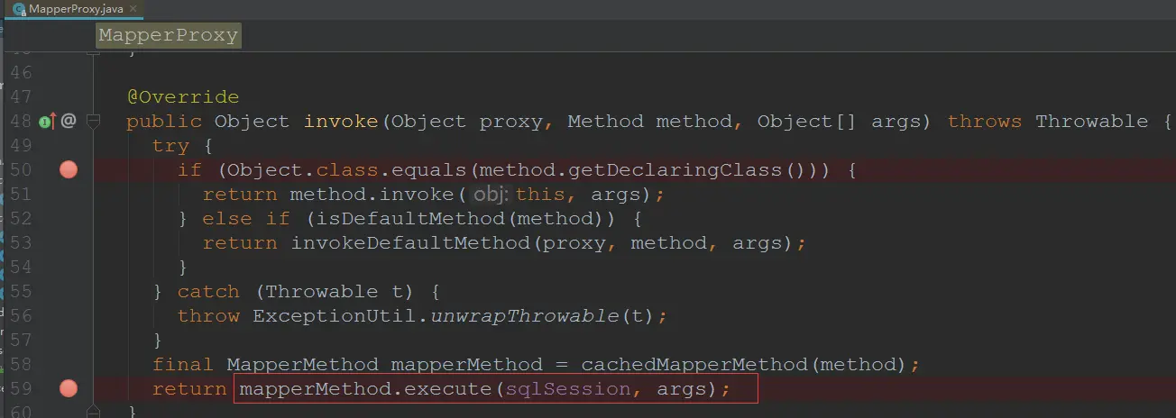 - MapperProxy实现了InvocationHandler,重写invoke方法。该方法主要调用MapperMethod的execute方法
