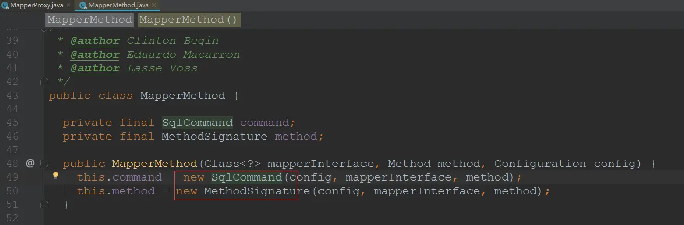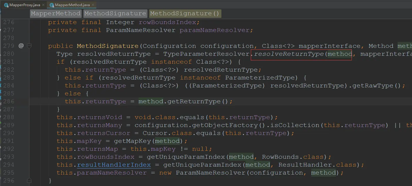 - MapperMethod内部新建了两个类:SqlCommand,MethodSignature