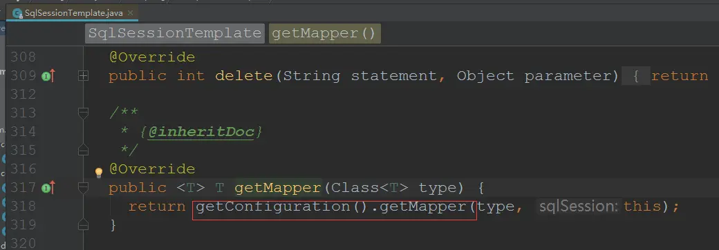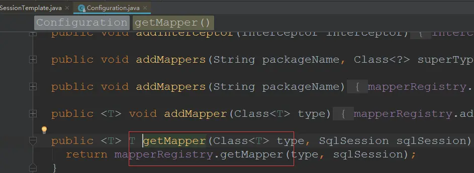 - SqlSessionTemplate的getMapper方法,实际调用的是Configuration的getMapper方法